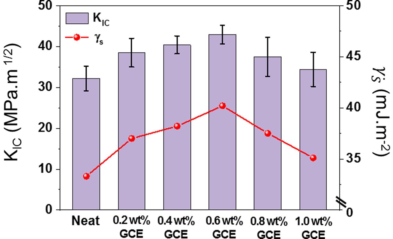 Fig. 8 Correlation between KIC and surface free energy in the interfacial adhesion of GCE composites |