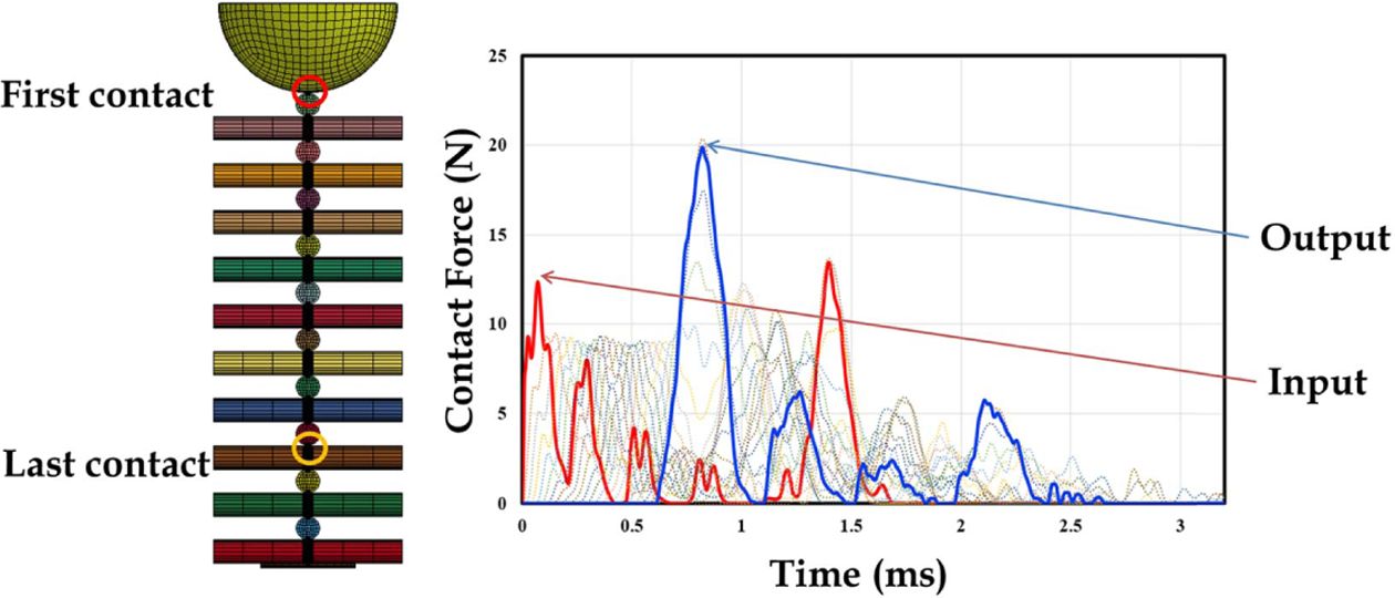 Fig. 2 Input impact and output impact in wood pile metamaterial |