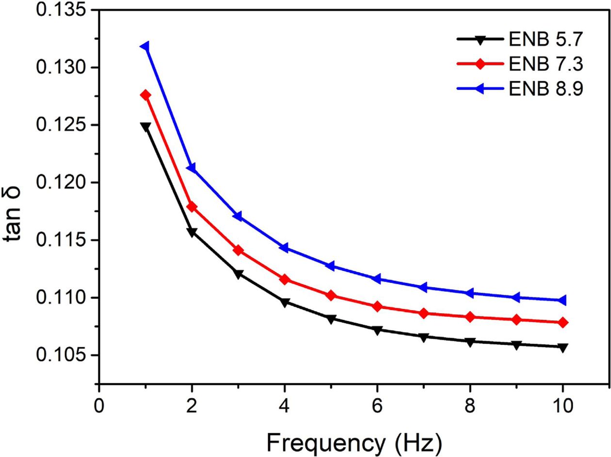 Fig. 6 Frequency-dependent tanδ curves of the EPDM/PP TPV with three different ENB content |