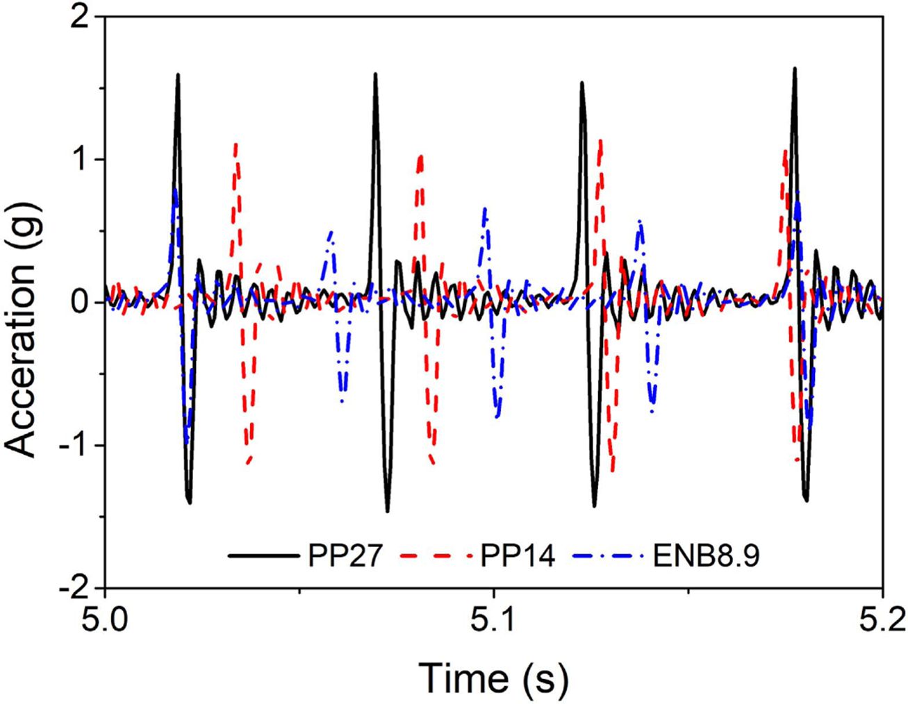 Fig. 7 Acceleration graphs of PP27, PP14 and ENB8.9 |