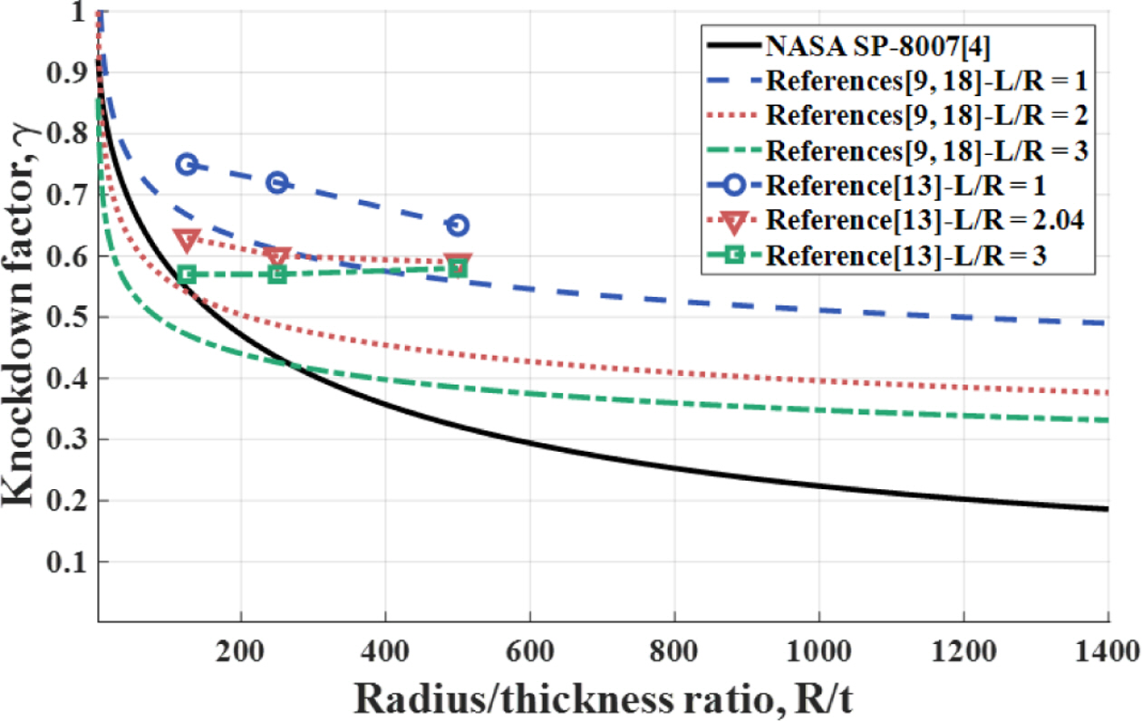 Fig. 1 Buckling Knockdown factors [4,9,13,18] |