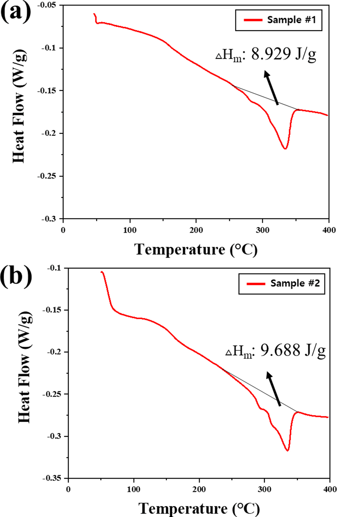 Fig. 13 DSC data for (a) sample #1 and (b) sample #2 |