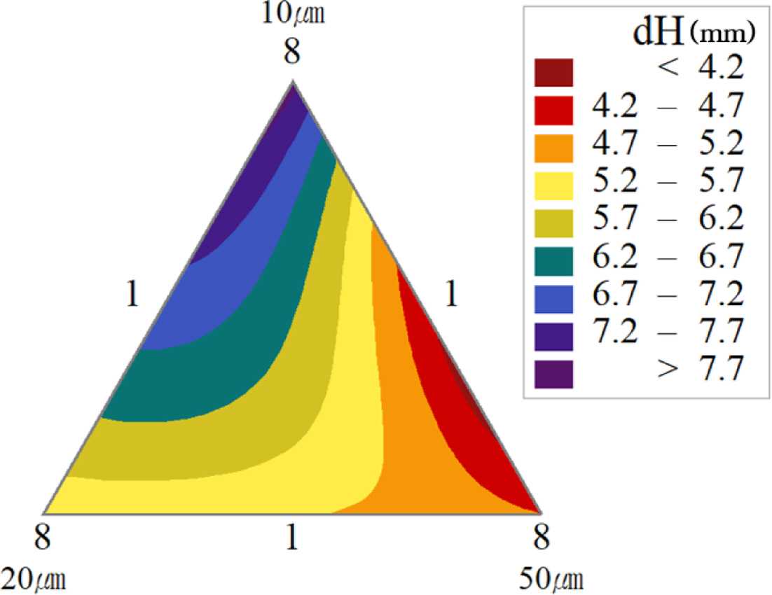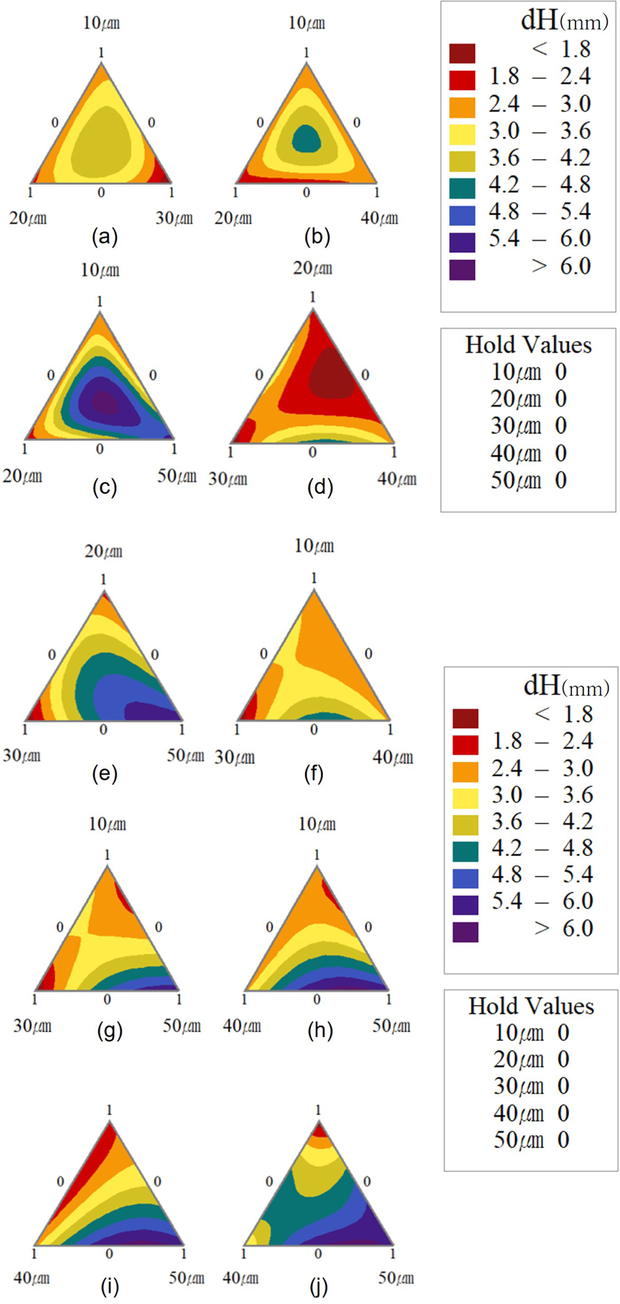 Fig. 6 10 µm, 20 µm, 50 µm Contour Plot according to mixing ratio |