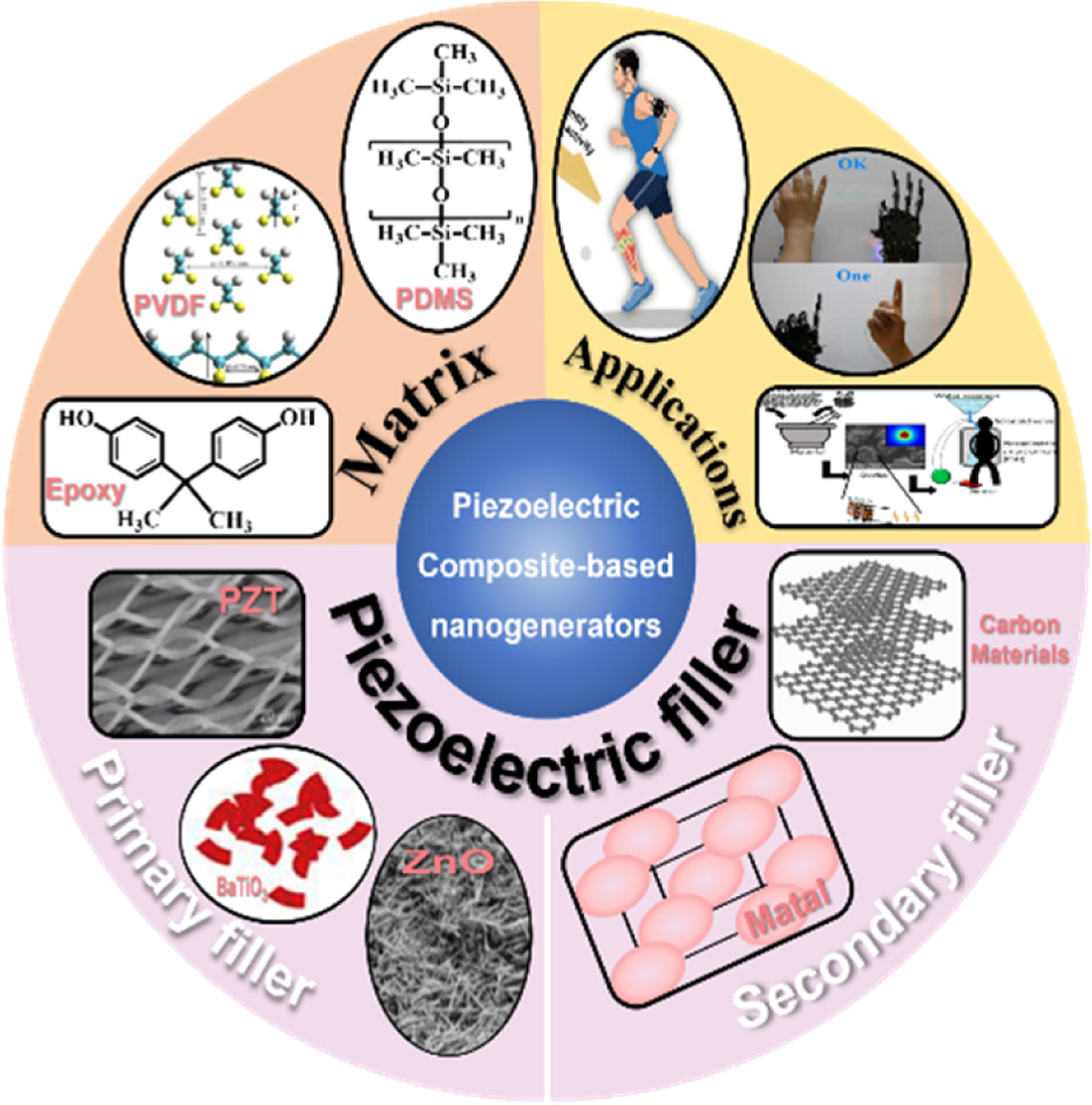 이 논문에서는 압전 나노 발전기의 압전 필러로 사용되는 재료 개발, 복합재료 기반 압전 에너지 수확 및 응용 프로그램에 대한 포괄적인 검토가 제공되었다. 압전 효과가 처음 발견된 이후 무기, 유기 및 복합 압전 재료가 연구되었다. 초기에 사용되었던 PZT 및 BaTiO3 등의 세라믹 재료는 독성 및 약한 취성의 단점으로 압전 소자로써 적용을 방해하며, 친환경 및 약한 취성을 극복하기 위해 ZnO가 적용되었다.