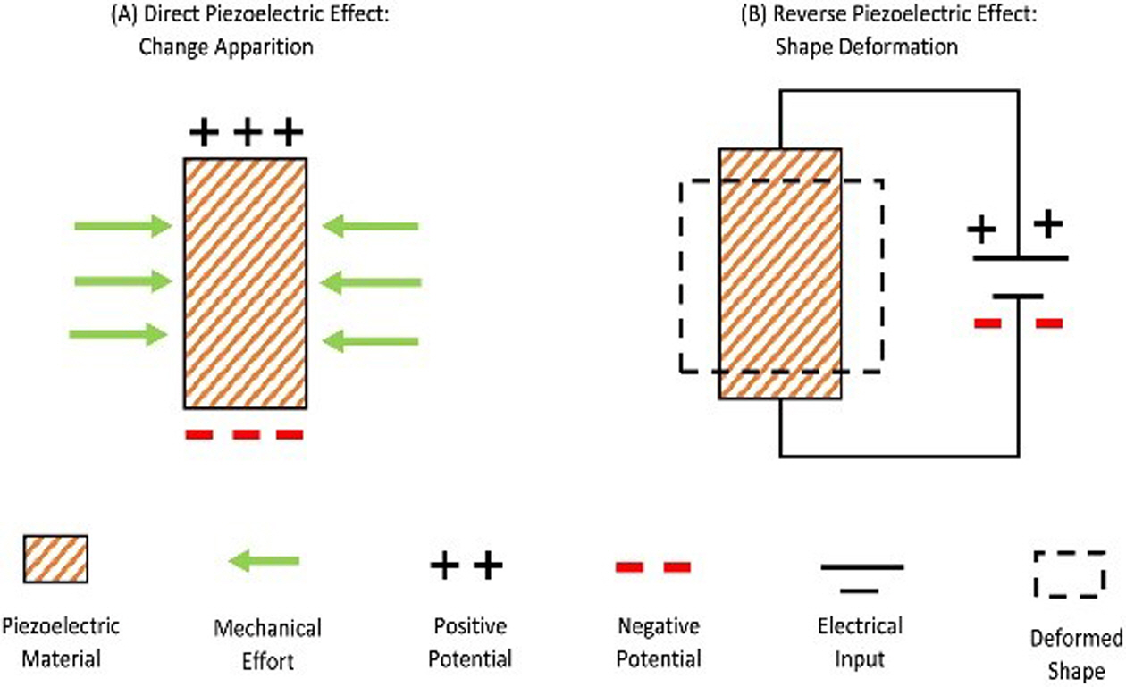 Fig. 2 Electromechanical conversion of piezoelectric phenomena. Reprinted with permission [20] Copyright 2018, John Wiley & Sons Ltd. |