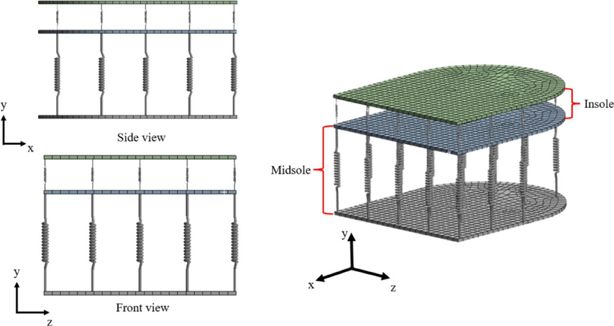 Fig. 2 Modeling of an insole and a midsole using spring elements |