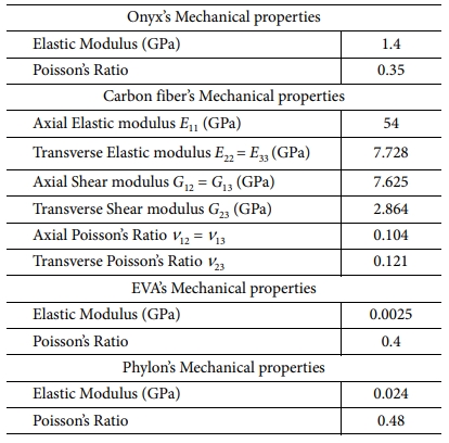 여기서 Ef, Ec와 Eo는 각각 프레임, 탄소 연속 섬유 그리고 단섬유/나일론 복합재료의 물성치를 나타낸다. 그리고 f는 탄소 연속 섬유의 부피 분율을 나타낸다.