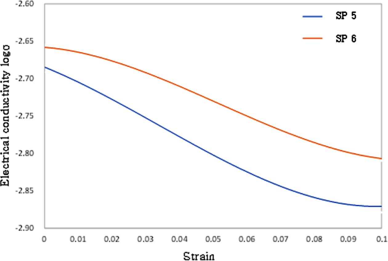 Fig. 7 The electrical conductivity of SP6 as a function of applied strain |