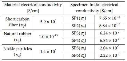 Table 2 Electrical conductivity of the material used to make the specimen and the initial electrical conductivity of specimens |