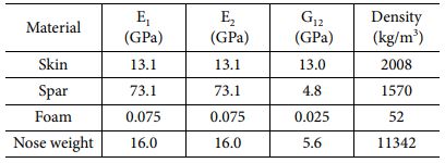 본 연구에서 구성한 최적설계 프레임워크를 이용하여 전체 HART II 블레이드에 대한 구조 최적설계를 수행했다. 최적설계에 활용한 PSGA의 한 세대의 인구수는 60이며, 최대 계산 횟수는 10,000으로 설정했다. 또한 목적함수의 값의 오차가 1×10-5 이내로 수렴하거나 30세대 이상 같은 값이 반복될 경우 계산이 종료되도록 구성하였다. Table 1는 블레이드 설계에 이용한 재료들의 기계적 물성을 정리해서 나타낸 것이다. 블레이드의 외피에 사용된 유리섬유[20]는 [±45o]의 복합재료 유효물성[21]을 사용했다. 내부에 배치되는 스파 구조물은 IM7/8552 graphite/epoxy 직조섬유[22]를 사용했다. 블레이드의 보충재로는 폼을 사용했으며, 블레이드 균일 단면영역의 앞전 부분에 배치되는 무게 추의 재료는 납을 사용했다. 본 연구에서 선정한 재료는 HART II 블레이드에 비해 경제적이며, 가용성을 고려하여 최신화한 특징이 있다.