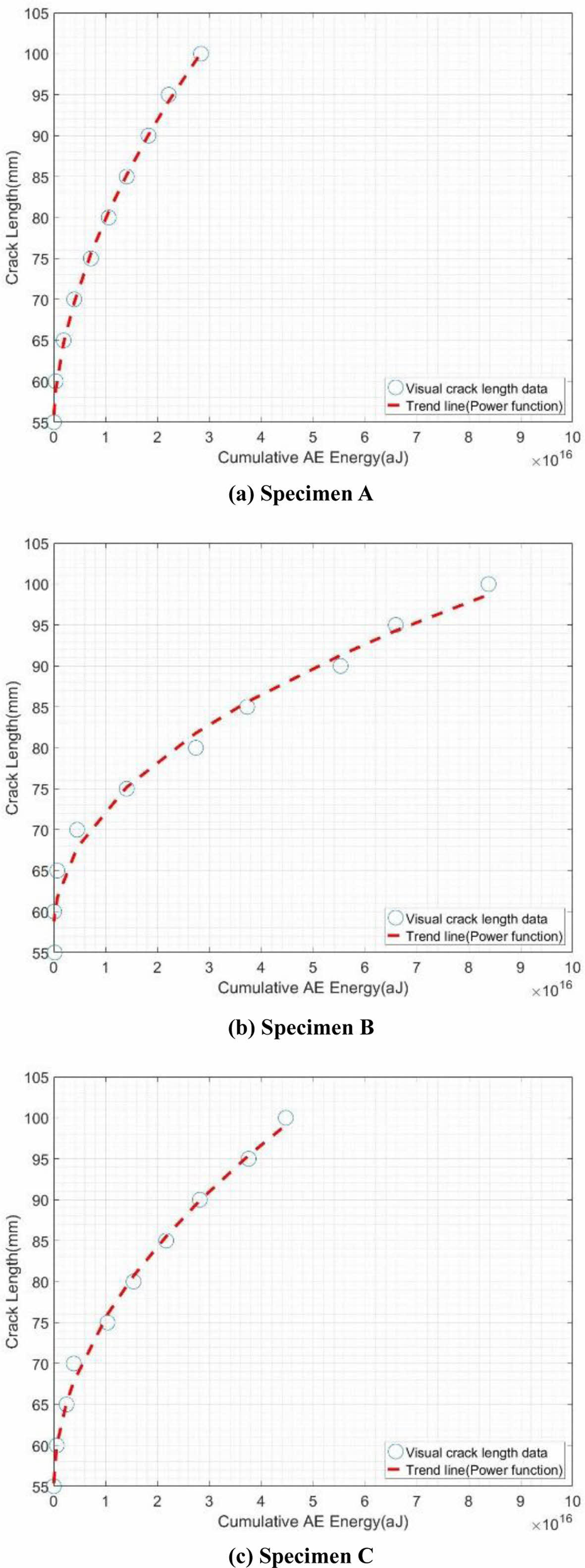 4.1.2 누적 음향 방출 에너지 및 균열 길이의 상관 관계