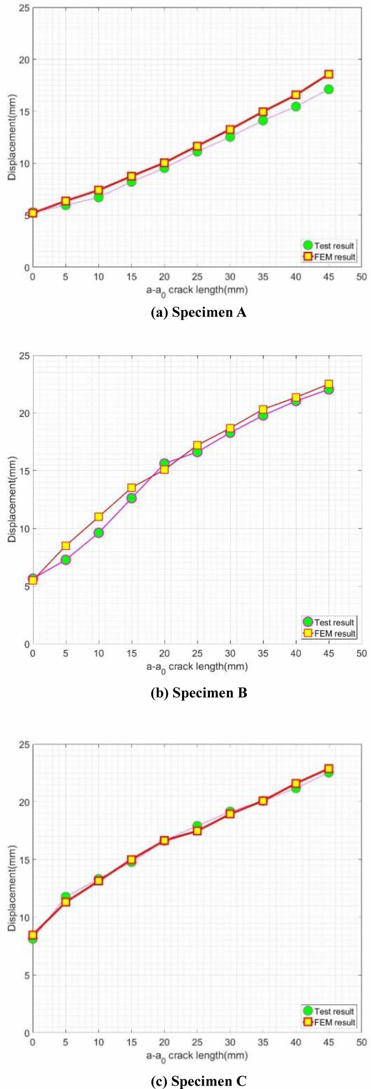 Fig. 9 Comparison of crack length-displacement curve |