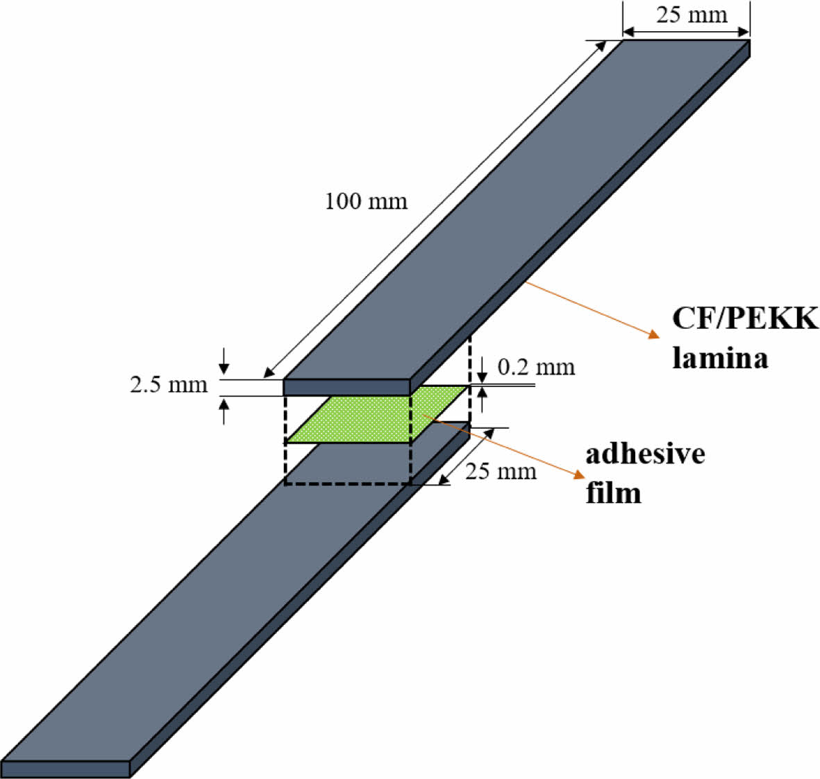 Fig. 2 Dimensions of CF/PEKK lamina bonded by oven welding process |