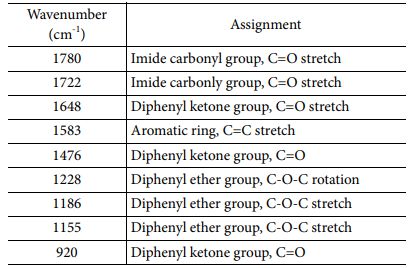 Table 2 Characteristic absorption FTIR bands of interphase of PEEK and PEI bonded CF/PEKK lamina [25] |