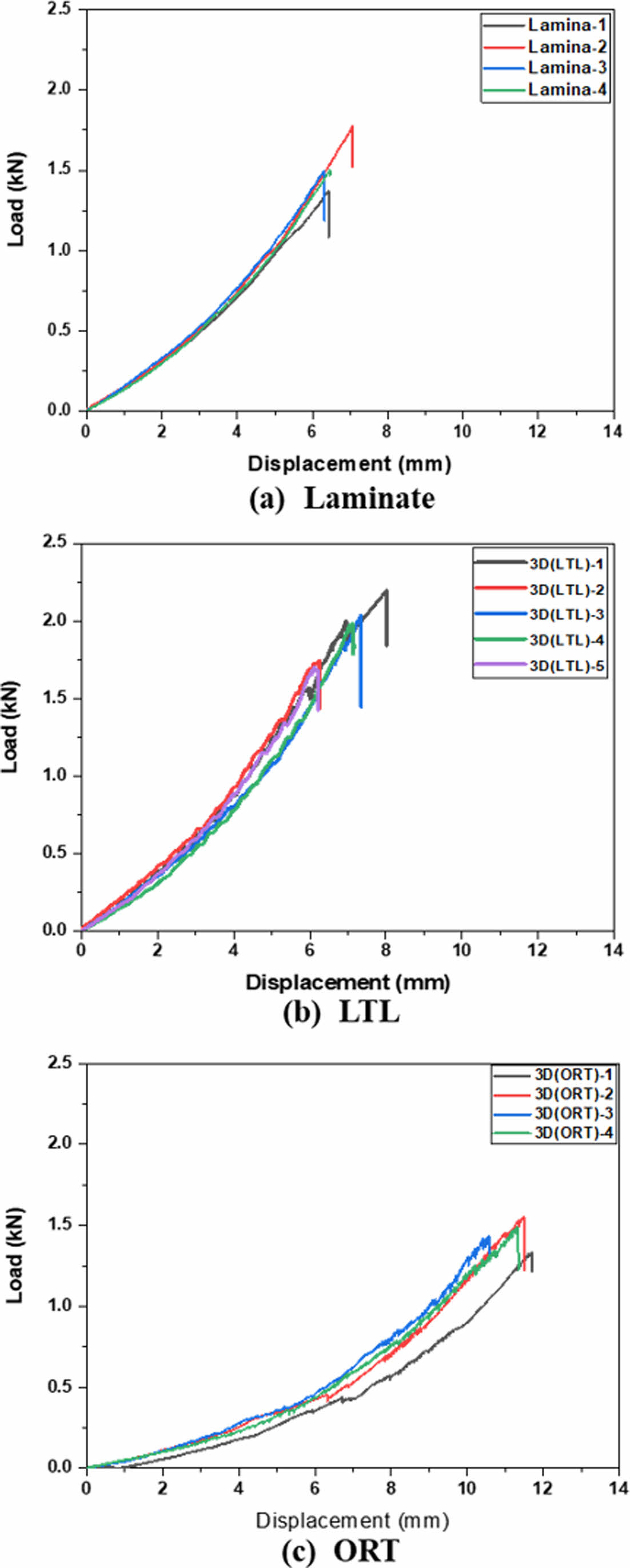 Fig. 10 Load-displacement curves obtained in 4-point bending test |