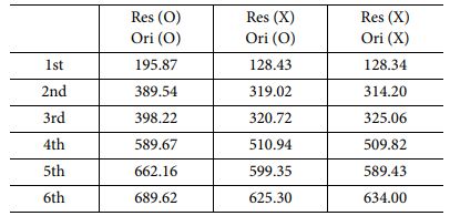 세 가지 모든 경우의 해석에 대해 2000(Hz) 범위에서 modal 값은 25개씩 나왔으며 첫번째 mode부터 여섯 번째 mode까지에 대한 결과를 정리하여 Table 5에 명시했다. Table 5의 첫 행은 본 연구에서 시행한 세 가지 해석을 명시한 것이다. Res와 Ori의 의미는 각 잔류응력과 섬유 배향을 의미하며, 괄호 안의 O와 X는 잔류응력과 섬유 배향의 포함 유무를 표기하는 기호로써 이용했다. 또한, 3번째 mode에 대해 mode 형상 이미지를 Fig. 12에 정리하였다.
