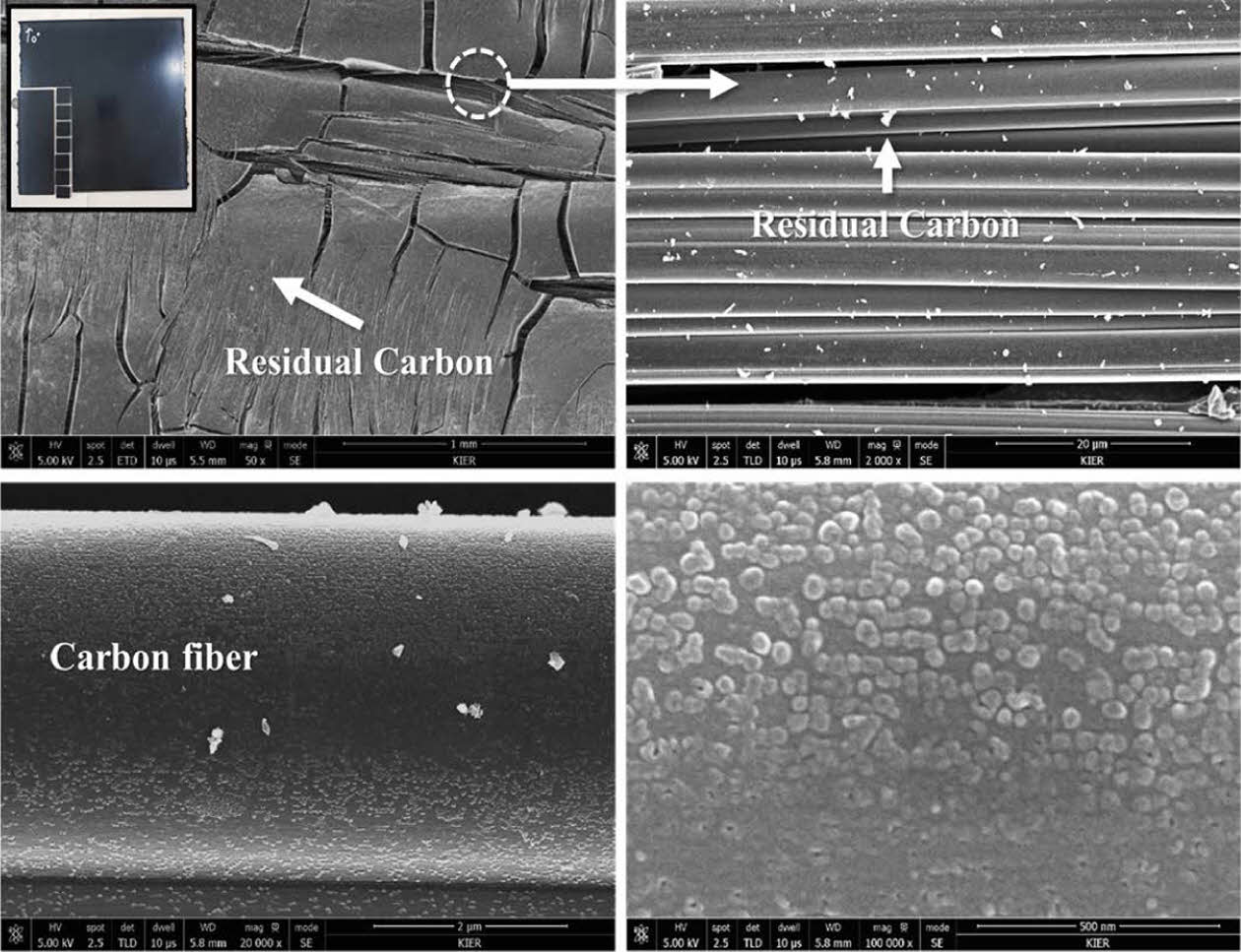 폐CFRP 재활용 탄소섬유를 다시 CFRP 제조에 사용할 경우 모재의 열분해 잔류 탄소는 불순물로 작용해 문제점으로 나타나다. 그러나, C/C 복합소재 제조 시에는 잔류 탄소가 탄소 모재에 포함되어 오히려 복합소재 치밀화를 향상시키는 요인으로 작용할 수 있다.
