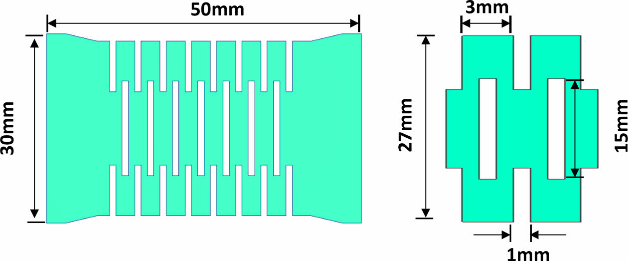 Fig. 1 Design of the strain sensor with kirigami patterns |