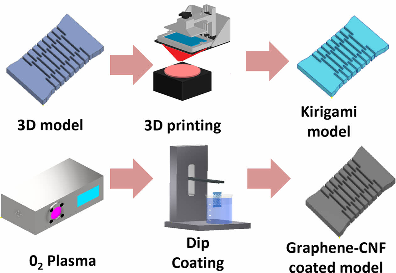 2.1 그래핀과 탄소나노섬유가 코팅된 키리가미 구조 센서 제작
