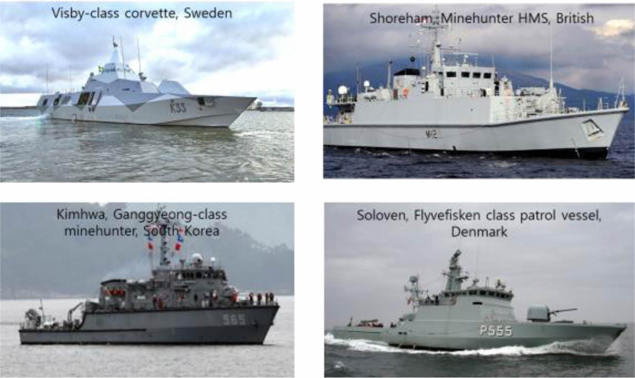 Fig. 2 Composite patrol boats, mine-countermeasures vessels (MCMVs) and corvettes [4-7] |