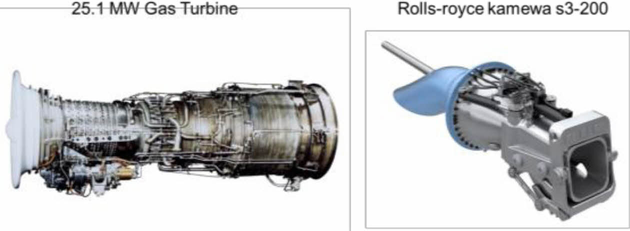 경비함에 적합한 가스터빈 추진 시스템을 조사하였고 CFRP 설계함의 폭과 깊이를 고려하여 출력 만족 가능한 엔진을 선정하였다. 고속디젤엔진이 아니고 가스터빈을 선택한 이유는 앞서 언급하였듯이 가스터빈 엔진은 고속운항 및 급가속 시 출력 측면에서 더 유리하기 때문이다. Fig. 6에 보이듯이 본 논문에서 선정한 기관은 GE Aviation 사[30]의 25.1 MW 가스터빈이며 해당 기관에 적합한 워터제트 추진기의 경우 Rolls-Royce 사[31]의 Kamewa S3-200(출력 범위: 10,000-41,000 kW)으로 2기로 선정하였다. 본 논문의 경비함의 기관부 중량은 216.4 ton으로 기관(90 ton), Gear-box (31.2 ton), 추진기(95.2 ton)으로 구성되어 있다.