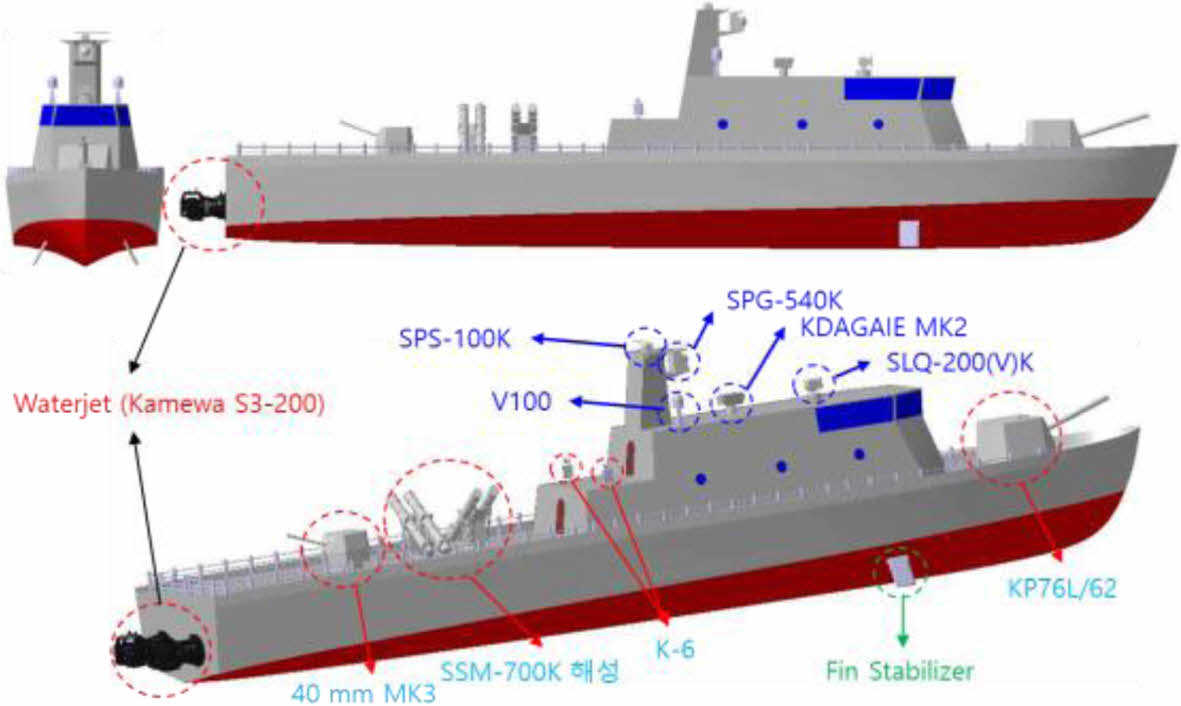 무장체계 중 대함 미사일 SSK-700K는 경비함들간의 무력 충돌과 미사일의 사격 범위를 고려하여 선정하였다. 주포는 경비함들간의 무력 충돌 시 가까이 접근한 함정을 사격하기 위하여 76 mm 함포로 KP-76L/62를 탑재하였다. 부포로는 대함 미사일 요격과 경고 사격을 목적으로 40 mm 함포인 40 mm MK3를 탑재하였으며, 또한, 중기관총으로 K-6를 탑재하였다.