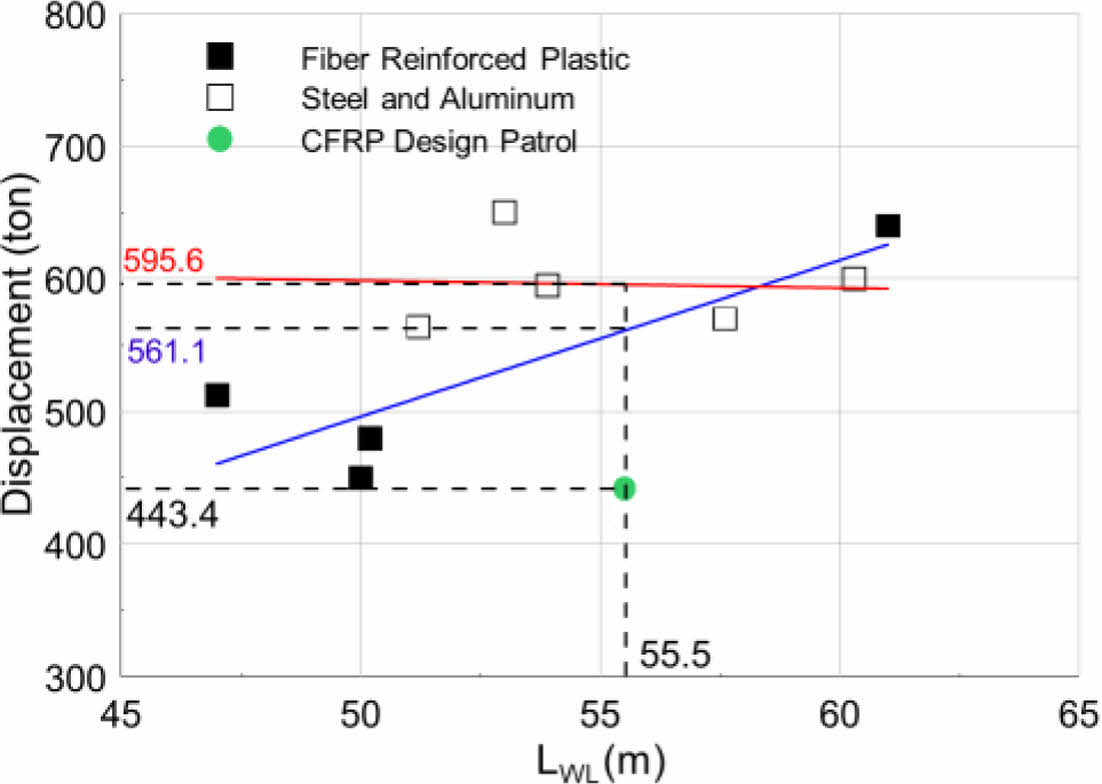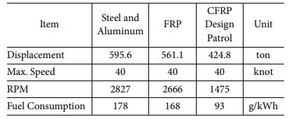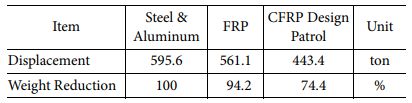 Table 13 Fuel oil and freshwater weight estimation due to lightweight effect of CFRP design patrol |