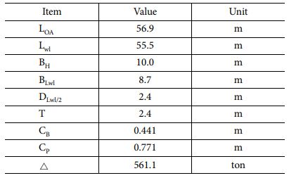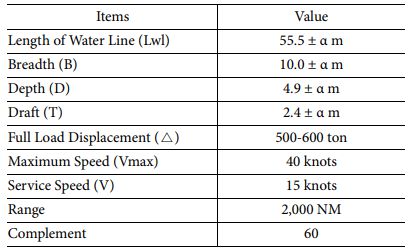 선정된 유사 실적 경비함의 분석은 각 실적 경비함의 치수와 무게 등을 통계처리 함으로써 본 CFRP 경비함의 주요제원을 도출하였다. 이 때 Oh & Lee가 제시한 설계 프로그램[24]을 활용하였다. Table 2는 설계프로그램에 입력된 4척의 유사 실적 경비함의 주요 스펙이다.