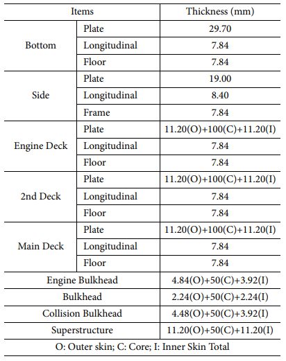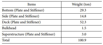 Table 10 Hull structure weight calculation from the 3D CAD model according to structure type |