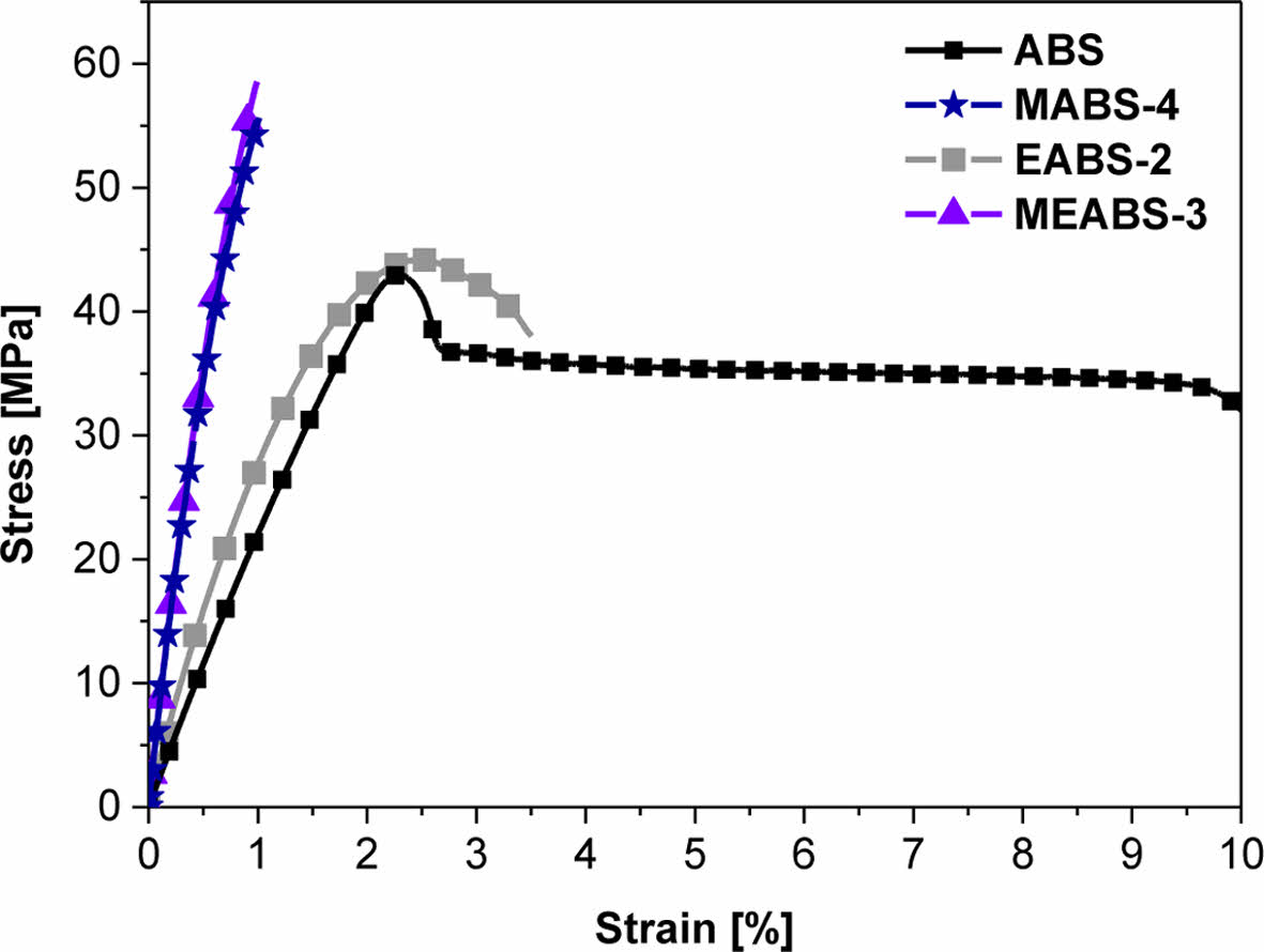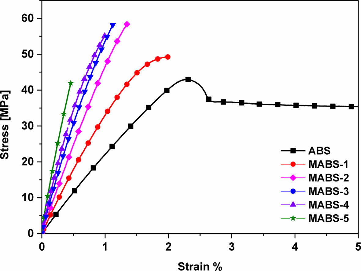 Fig. 4 Strain-Stress curve of MOSw/ABS composites |