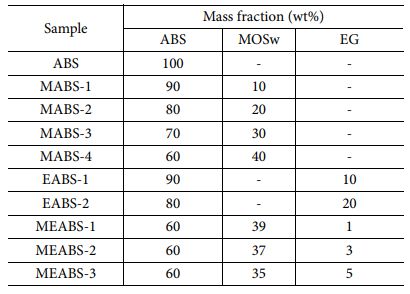 An ABS (HF380, LG Chemical, Korea) was used as polymer matrix, and an EG (Samjung CNG, Korea) and a MOSw were used as flame retardant fillers (FRs). MgSO4 and NaOH for synthesizing MOSw were purchased from Sigma Aldrich, USA.