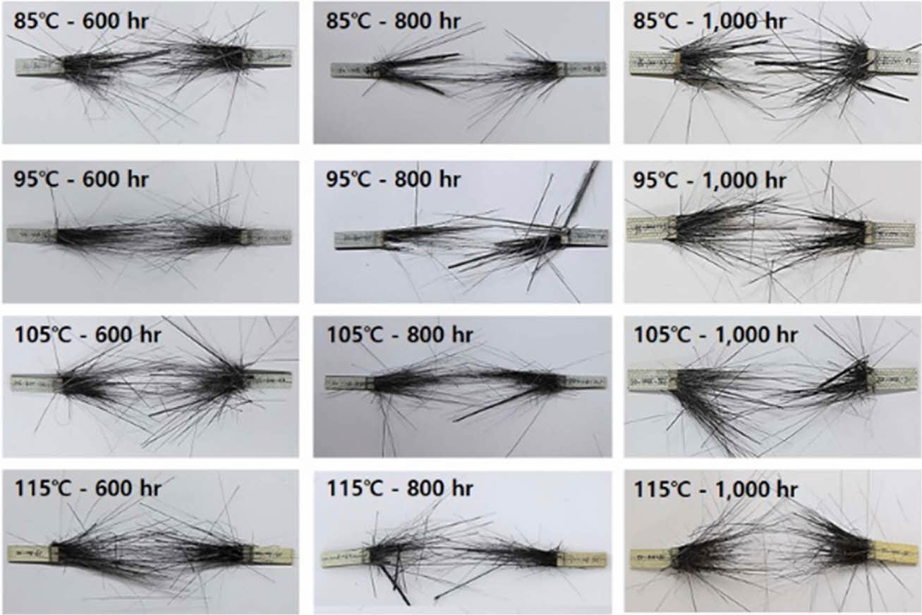 따라서 본 연구에서는 고온 노출환경에 따른 수소버스 용기 복합재의 기계적 물성 변화를 바탕으로 수소버스용 내압용기의 고온 정압 시험을 위한 온도 및 유지시간 기준 데이터를 확보하고자 하였다. GTR No. 13에서 제시된 시험 환경인 85oC와 1,000시간을 기준으로 복합재의 노출환경을 조성하여 수소버스 용기 복합재의 기계적 강도 변화를 측정하였다.