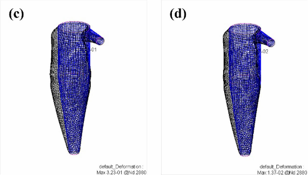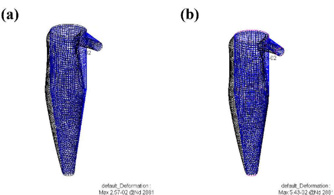 Fig. 18 Deformation result of cyclone. (a) ABS; (b) Aluminum |