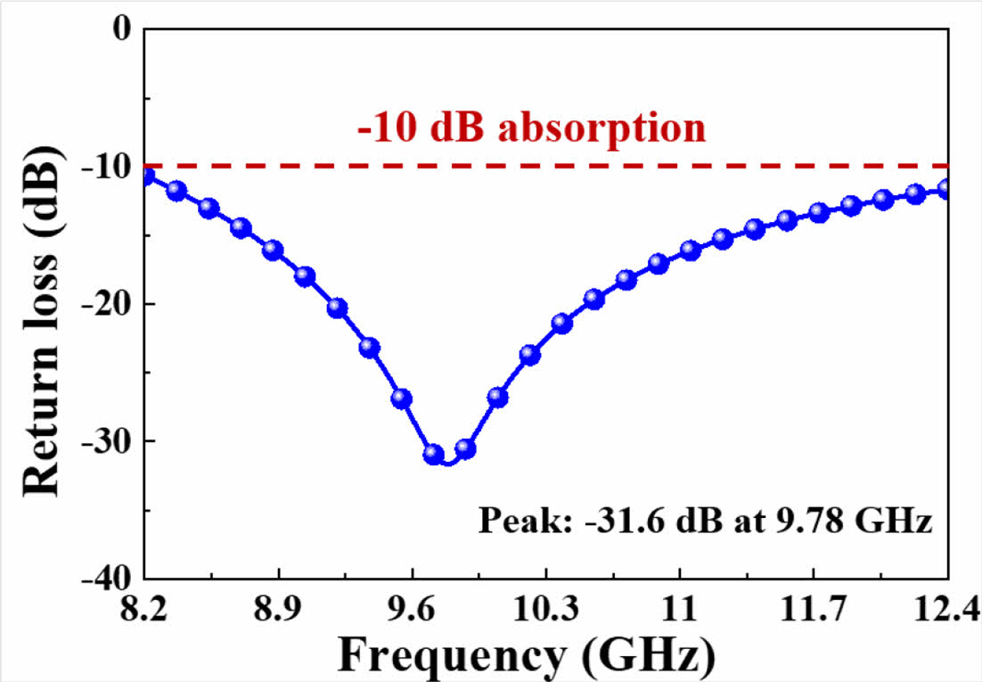 Fig. 7은 전자기파 흡수 성능을 평가하기 위한 시험 셋업이다. 그림에서와 같이 두 개의 혼 안테나 사이에 위치하는 시편 홀더에 제작한 레이더 흡수 구조를 거치하고 네트워크 분석기를 통해 반사손실을 측정하였다.