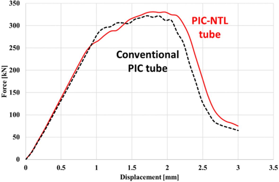 기존에 제안된 PIC 설계 기법과 비교하기 위하여 선행 유한요소해석과 동일한 경계조건으로 유한요소해석이 진행되었으며, 본 연구에서 제안된 PIC-NTL 기법으로 설계된 tube의 지지하중은 기존에 제안된 PIC 기법보다 약 2.7% 향상되었으며, 에너지 흡수율은 4.0% 향상된 것으로 나타났다. 이를 통해 본 연구에서 제안된 PIC-NTL 기법이 기존에 제안된 PIC 기법보다 더 우수함이 검증되었다.