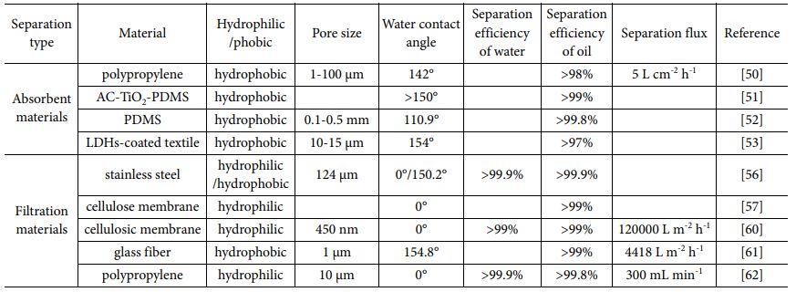 Table 2 Comparison of absorbent materials and filtration materials for oil-water separation |