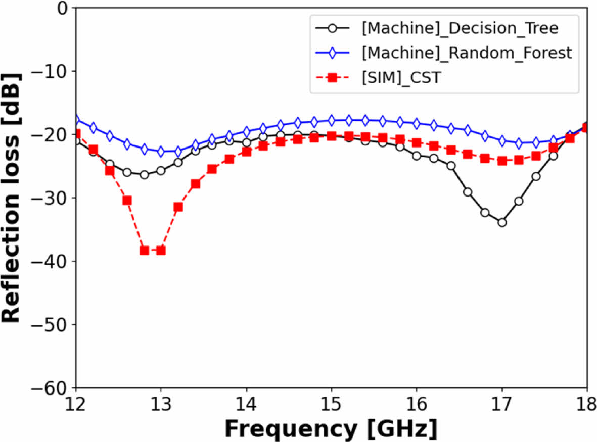 Fig. 8 Decision Tree, Random Forest model, and CST simulation result at the Ku-band optimized design |