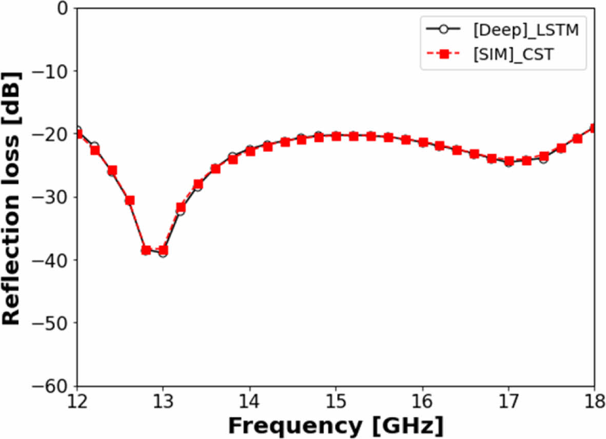 Fig. 10 LSTM model, and CST simulation result at the Ku-band optimized design |