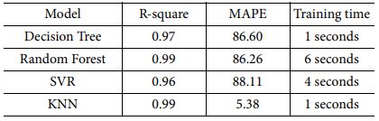 머신러닝의 경우 학습 시간이 모두 수 초급으로 매우 빠르다. KNN 모델이 머신러닝 모델중 R-square 값, MAPE 값, 학습시간 모든 면에서 가장 우수한 것을 확인하였다.