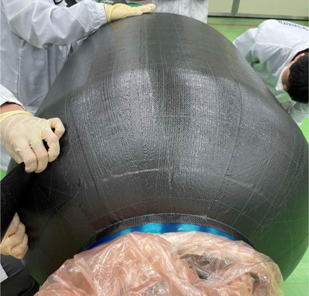 탄소섬유 평직 직물 소재를 핸드레이업 공정으로 적층하고, 기체투과율 성능의 향상을 위하여 오토클레이브(autoclave) 장비로 성형하였다. 또한, 라이너 없이 추진제 탱크를 제작하기 위해 분리형 맨드릴을 적용하였다. 맨드릴 중량을 줄여 맨드릴 취급 용이성을 높이고 맨드릴 처짐에 따른 제품 품질의 저하를 줄이기 위해 전통적인 금속재가 아닌 복합재 분리형 맨드릴을 설계 및 제작하였다.