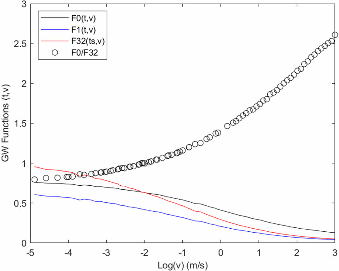 여기서 주목할 점은 식 (21)에 제시한 바와 같이 λmin 거동은 F0(t)/F3/2(ts)에 의존하며 해당 비율은 Fig. 9와 같이 자기-아핀 노면의 경우 마찰속도에 따라 비선형적으로 증가하는 거동을 보이므로 마찰속도가 증가할수록 ωmax=2πν/λmin 값이 감소하는 결과를 보인다. 따라서 마찰속도가 클수록 micro 스케일의 거칠기보다 macro 스케일의 거칠기에 의한 히스테리시스 마찰 기여도가 더욱 증가한다고 예측할 수 있다.