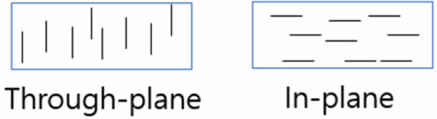 Vacuum filtration을 통해 제작된 시편 속 강화재는 Fig. 1과 같은 방향으로 배열되며 시편 속 강화재의 배열 방향은 In-plane과 Through-plane으로 구분하였다. 제작된 시편의 열전도도 측정을 위해 시편을 10 mm ∙ 10 mm ∙ 2 mm로 가공한 뒤 NETZSCH사의 LFA-467 모델을 사용하여 열전도도를 측정하였다.