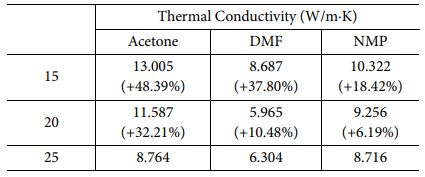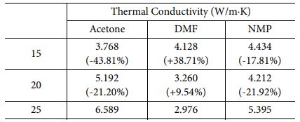 Fig. 3 Thermal conductivity of specimen using (a) Acetone (b) DMF (c) NMP |