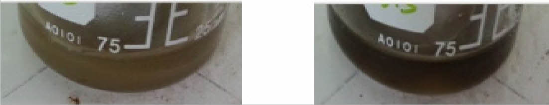R-GO는 GO의 열처리 과정을 통해 생성하였다. 건조하여 powder 화 된 GO를 chloroform 용액에 용융시킨 후 상온상태에서 200 rpm의 stirring 기기에 24시간 동안 교반시켰다. 추가로 80oC의 조건에서 Magnetic stirrer를 이용하여 24시간 동안 교반을 진행하였다. 이 과정에서 GO solution이 GO의 환원으로 인해 갈색에서 황갈색으로 변화하는 모습을 Fig. 2에서 같이 확인할 수 있었다. 사용한 solvent를 증발시키기 위해 60oC의 조건에서 24시간 동안 건조하여 분말상태의 R-GO를 만들었다.