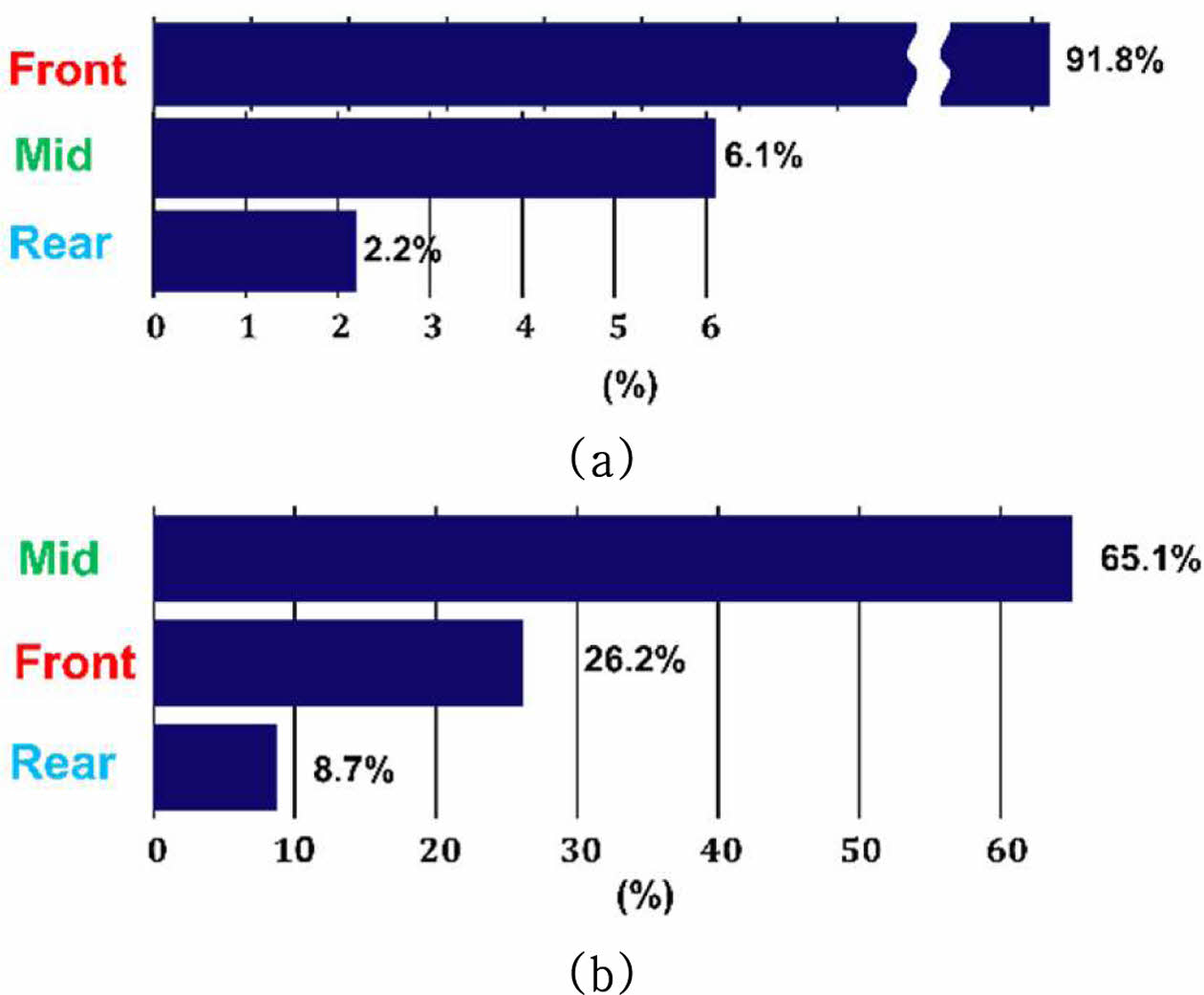 Fig. 9는 각각의 layer가 HIC와 NIC에 미치는 민감도를 나타낸 것으로 HIC에 가장 민감하게 반응한 layer는 Front (91.8%)이고 Rear(2.2%)는 민감도가 가장 낮은 것으로 나타났다. NIC에서 민감하게 반응한 layer는 Mid(65.1%)이고 Rear(8.7%)는 NIC에서도 민감도가 가장 낮게 나타났다.