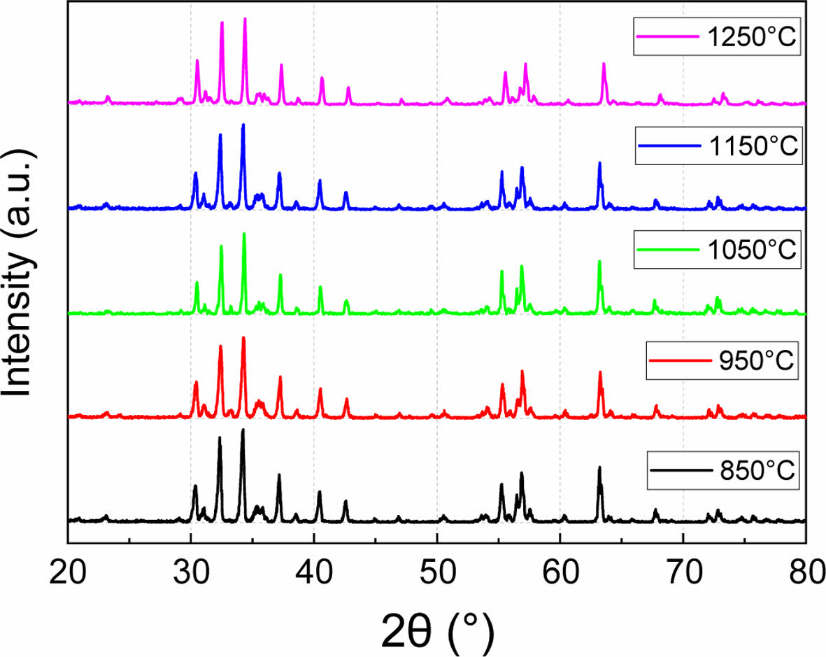 Fig. 2 X-ray diffraction patterns of M-type ferrite with different calcination temperature |