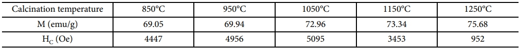 Table 1 Magnetization at ±25 kOe and coercive field of M-type ferrite with different calcination temperature |