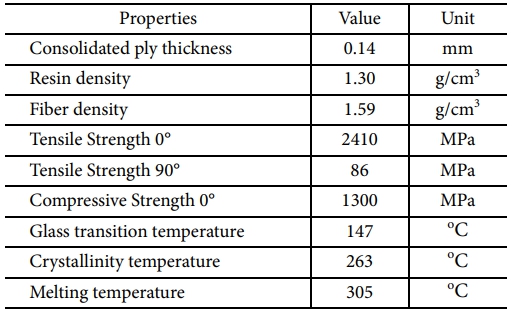 본 연구에서는 열가소성 복합재 Double folded clip 구조를 제작하고자 하며, 구조의 형상을 Fig. 1에 나타내었다. 재료의 경우 고속 열 성형 공정에 적용 가능한 우수한 생산성의 장점을 가지는 Toray 社의 TC1225 AS4D LMPAEK를 선정하였고, 소재의 물성은 Table 1에 나타내었다. UD Tape의 공칭 두께는 0.14 mm이며, 적층 순서는 [45/90/-45/0]2s이다.