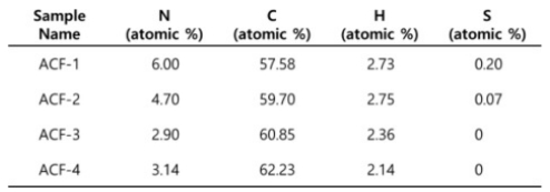 Table 1 A table summarizing the atomic composition of ACFs tabulated by elemental analysis |