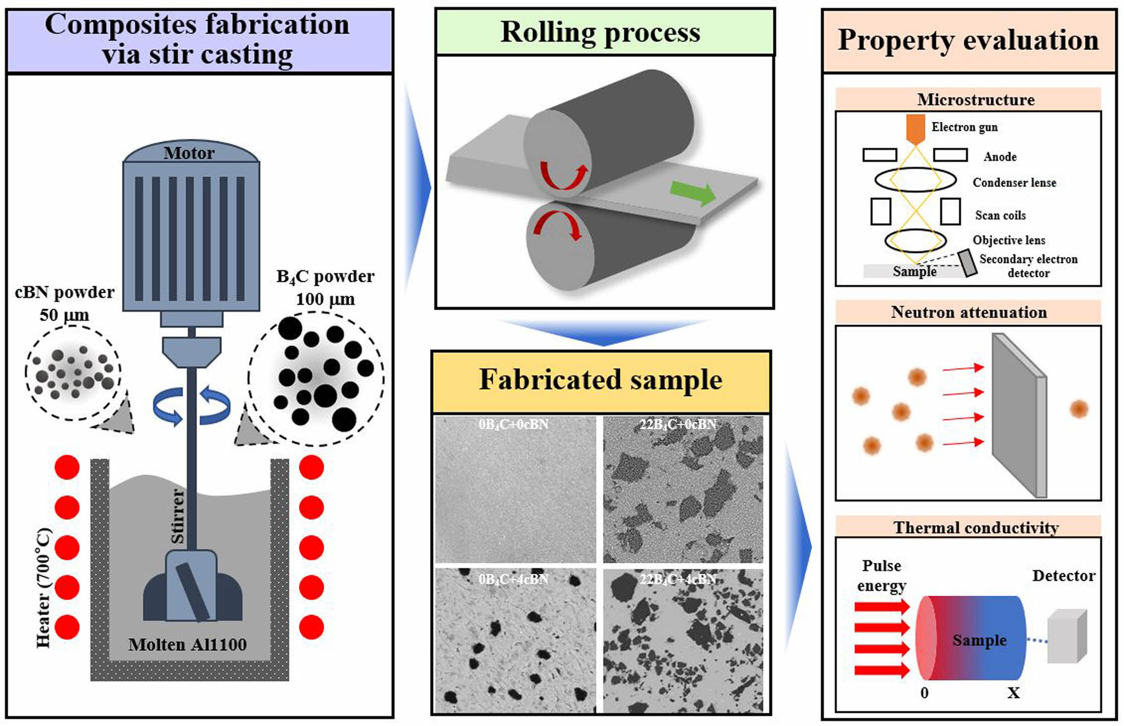 Keywords: 교반주조(Stir casting), 금속복합재료(Metal matrix composite), 열전도도(Thermal conductivity), 중성자 감쇠(Neutron attenuation)